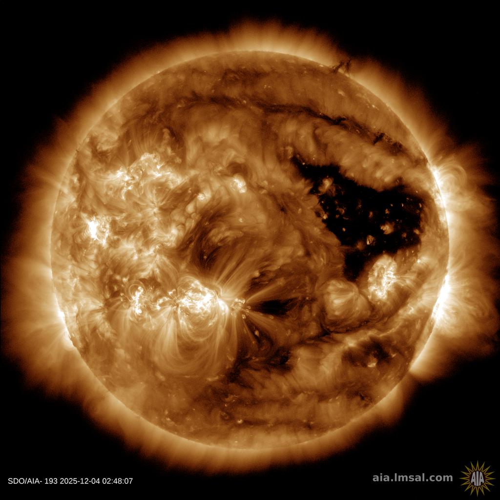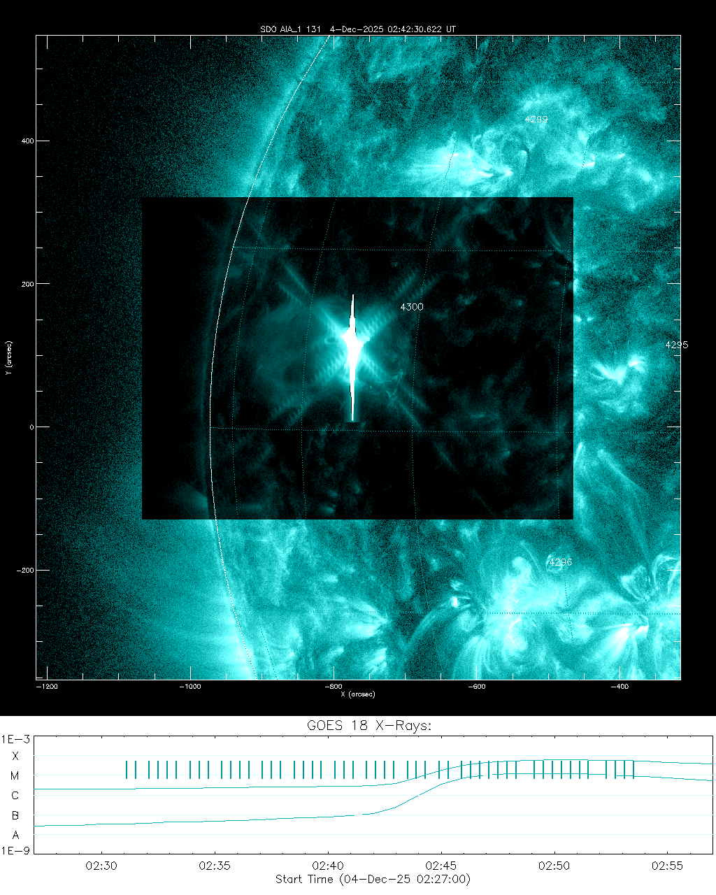 STRONG SOLAR FLARE AND CME: New sunspot 4300 erupted today (Dec.4th @ 0250 UTC), producing a strong M6-class solar flare. At the same time, the US Air Force detected a Type II solar radio burst, which means a CME is probably emerging from the blast site. Meanwhile, giant sunspot complex 4294-4296 remains ominously quiet. Solar flare alerts: SMS Text.