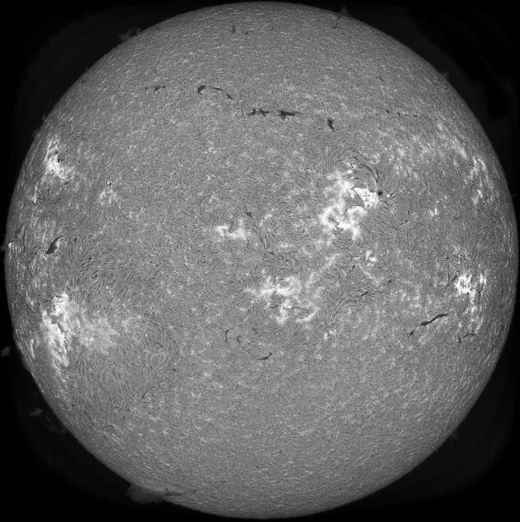 YOU'RE GOING TO WANT TO CLICK ON THIS IMAGE: The white-light sun is a blinding ball of featureless light. But, if you filter the light, and look only at the narrow range of wavelengths emitted by hydrogen, the true sun is revealed. This morning in Cannes, France, amateur astronomer Francois Rouviere used a spectroheliograph to do just that, and here is what he saw::