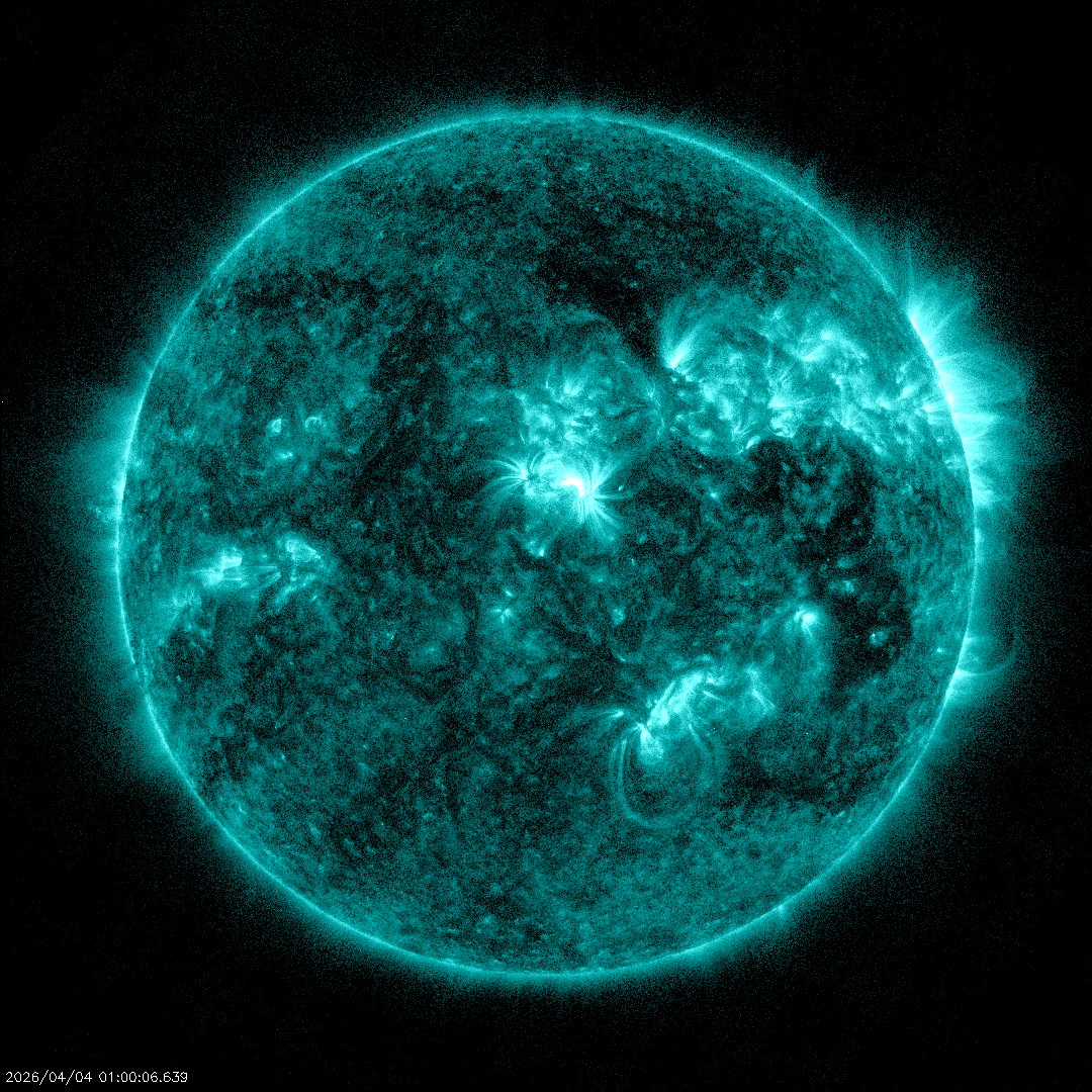 Solar wind flowing from this central coronal hole should reach Earth on April 4-5.