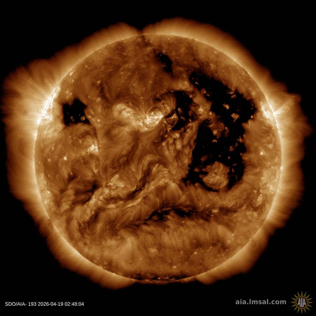 CONTINUED CHANCE OF STORMS: Earth's magnetic field is still reverberating from a G2-class geomanetic storm on April 18th. The activity is subsiding, but slowly, so that minor G1-class storms are possible on April 19th. High-latitude sky watchers should remain alert for auroras. Free: Spaceweather.com Newsletter