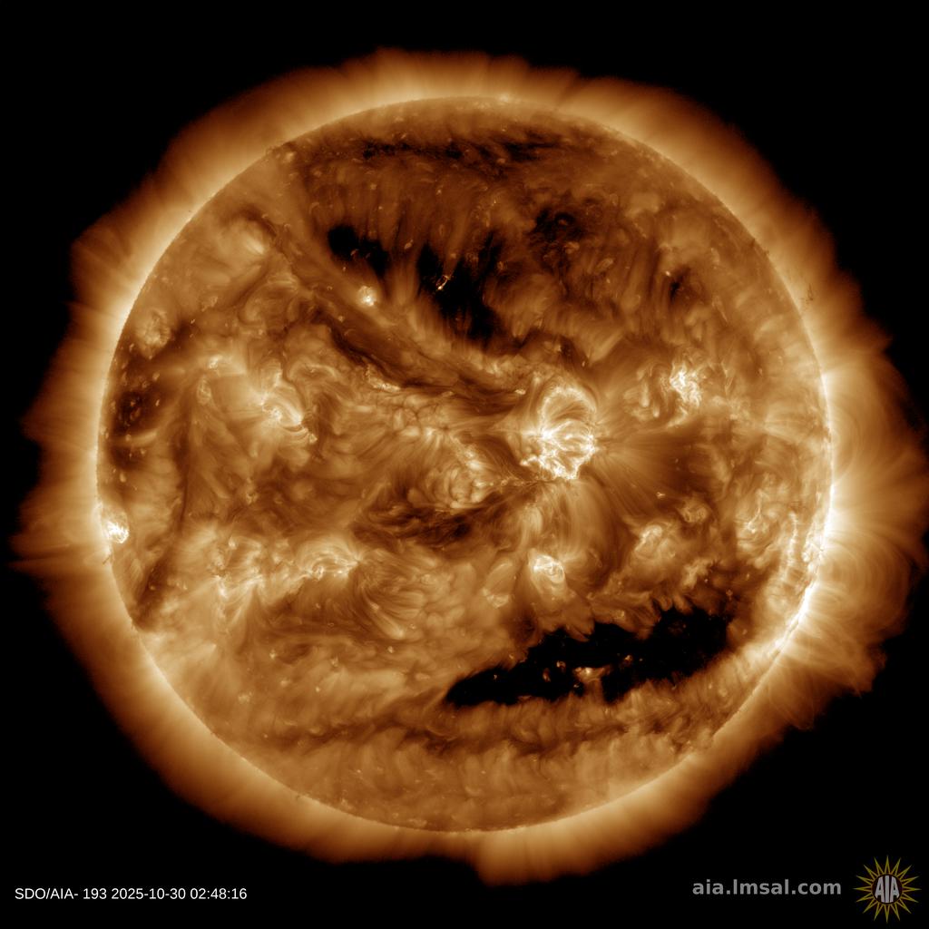 |  |  |   STRONG FARSIDE SOLAR ACTIVITY )(UPDATED): Earth is on the wrong side of the sun--if you love auroras. Three powerful CMEs have exploded from the sun's farside in recent days. Here they are: #1, #2, #3. All of them have missed our planet. Next week could be different. Solar rotation will soon turn the active sunspot toward Earth, and we could find ourselves in the strike zone as early as Nov. 3rd. CME impact      alerts: SMS Text.  RAPID BRIGHTENING OF COMET 3I/ATLAS: Spacecraft monitoring the sun  witnessed a dramatic surge in the brightness of Comet 3I/ATLAS as it plunged toward its Oct. 29th perihelion. Qicheng Zhang (Lowell Observatory) and Karl Battams (U.S. Naval Research Laboratory) reported the phenomenon in a preprint submitted to the Astrophysical Journal Letters on Oct. 28th. "The reason for 3I’s rapid brightening, which far exceeds the brightening rate of most Oort cloud comets, remains unclear," the authors say.
