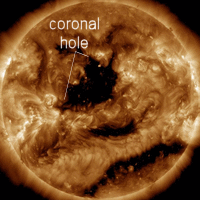 Solar wind flowing from this coronal hole should reach Earth on Feb. 24-25.