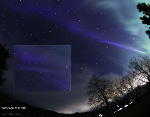 "Last night, a blue aurora appeared overhead," reports Geir T. Birkeland Øye of Ørsta, Norway, less than 200 miles south of the Arctic Circle. "This is a sight we don't often see."