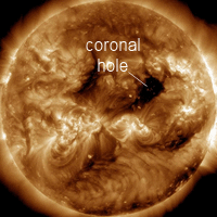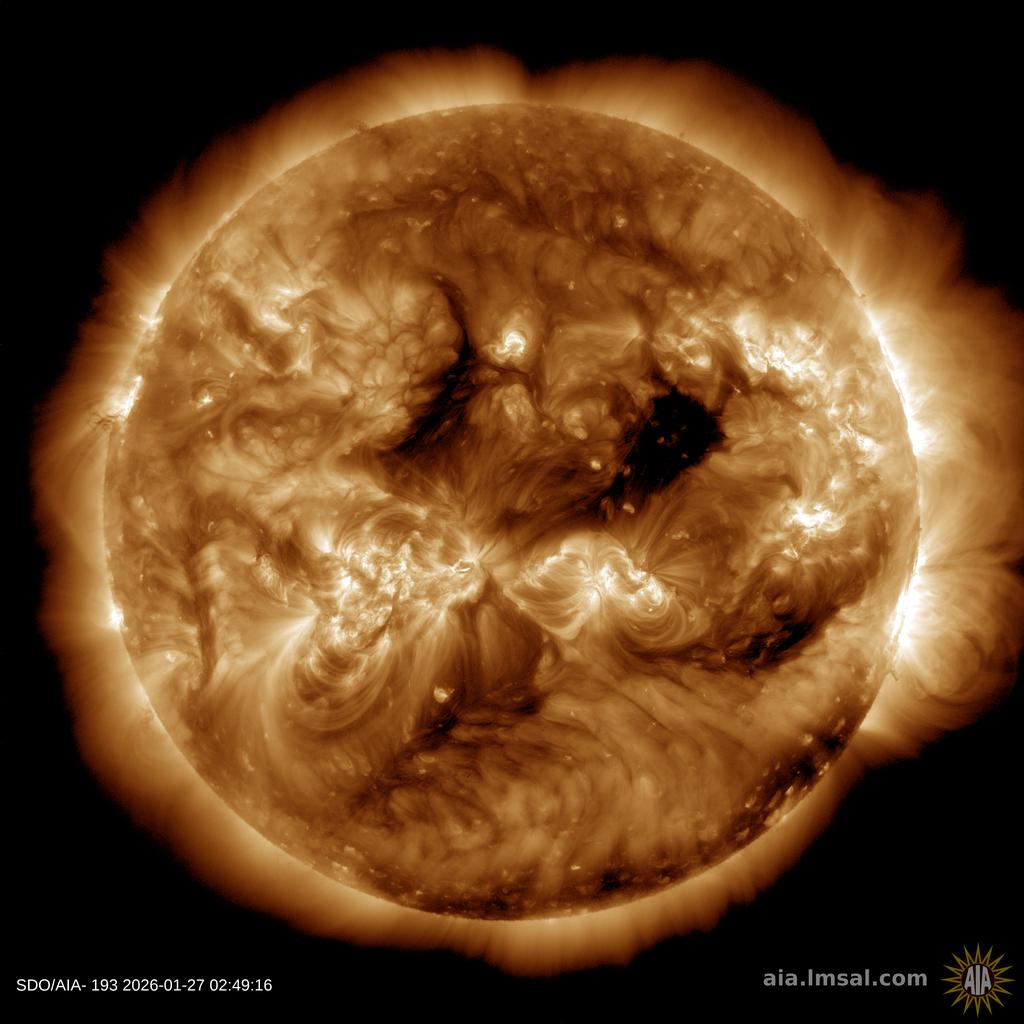 GEOMAGNETIC STORM WATCH (G1): Isolated G1-class geomagnetic storms are likely on Jan. 28th when a stream of solar wind reaches Earth. The gaseous material is flowing from a small yet well-aimed hole in the sun's atmosphere. Aurora alerts: SMS Text