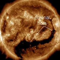 Earth is inside a stream of solar wind flowing from the indicated coronal hole. .