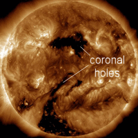 Solar wind flowing from these coronal holes should reach Earth on March 28-29.