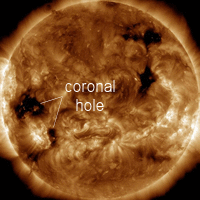 A coronal hole is emerging over the sun's southeastern limb.