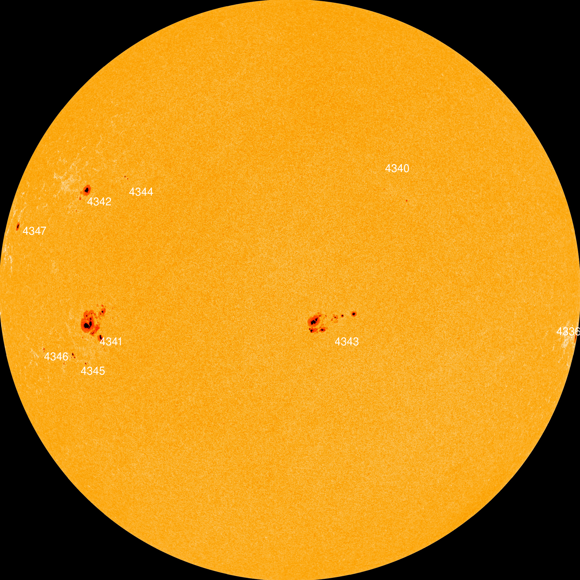 Big sunspot 4341 has a 'beta-gamma-delta' magnetic field that poses a threat for X-class solar flares. Credit: NASA/SDO