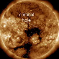 Solar wind flowing from this southern coronal hole should reach Earth on Nov. 26-27.