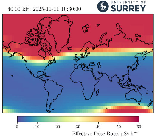The event began with an X5-class solar flare on Nov. 11th. Dyer and colleagues rapidly organized balloon launches with radiation sensors over the UK. They found effective dose rates at 40,000 feet exceeding 55 μSv per hour, with some flight paths possibly reaching 80 μSv per hour. Certain high-latitude transatlantic flights may have received twice the normal cosmic-ray dose.