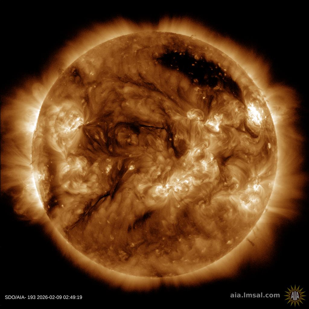 There are no significant equatorial coronal holes on the Earthside of the sun.