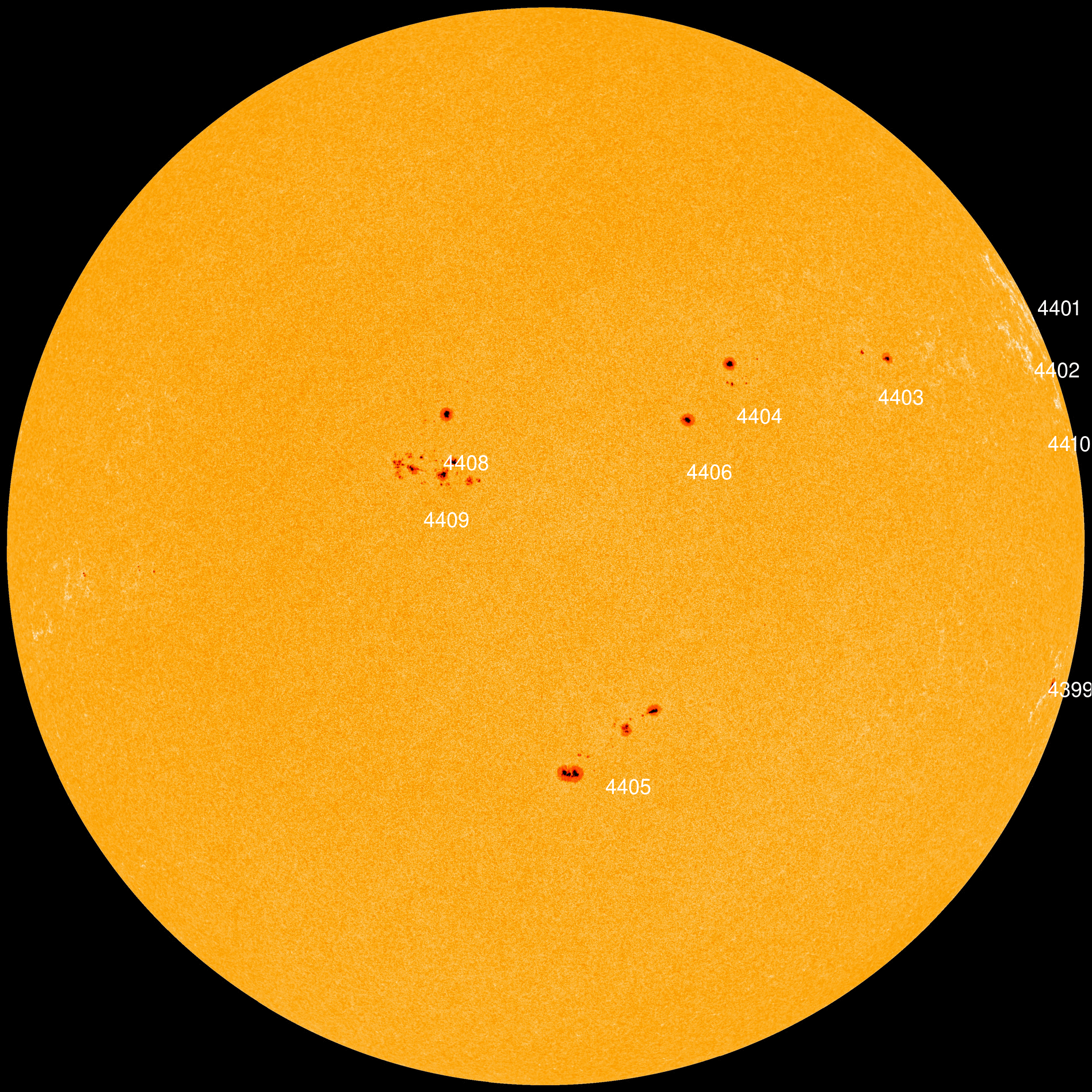 information about sunspots based on the latest NOAA/USAF Active Region Summary