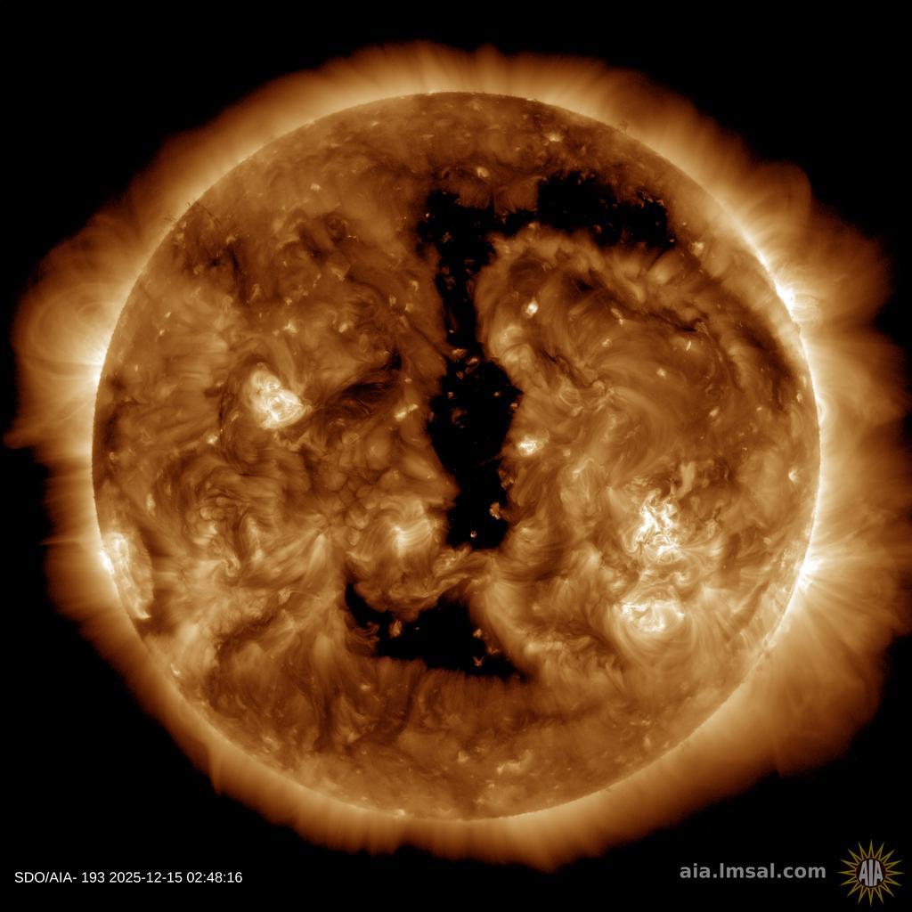 Solar wind flowing from this equatorial coronal hole should reach Earth on Dec. 17-18.
