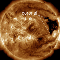 Earth is inside a stream of solar wind flowing from this triangular coronal hole.