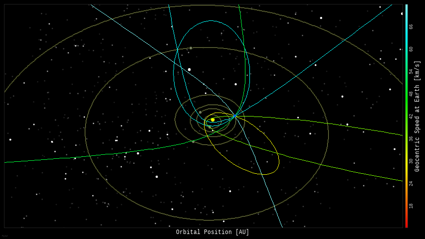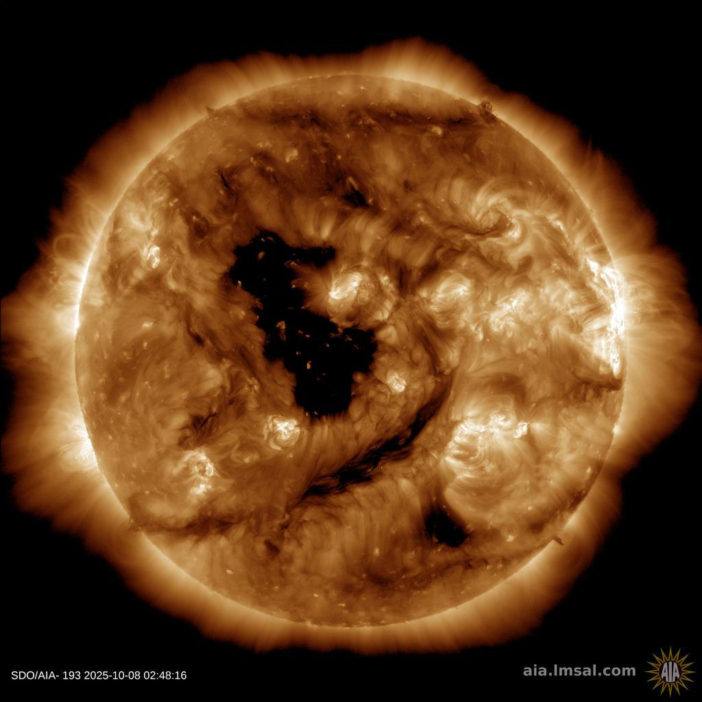 | | Switch to: Europe, USA, New Zealand, Antarctica Credit: NOAA/Ovation Planetary K-index Now: Kp= 1.67 quiet 24-hr max: Kp= 3.67 quiet explanation | more data Interplanetary Mag. Field Btotal: 9.83 nT Bz: 1.73 nT north more data: ACE, DSCOVR Updated: Today at 1146 UT Coronal Holes: 08 Oct 25  Solar wind flowing from this equatorial coronal hole should reach Earth on Oct. 11-12. Credit: NASA/SDO | more data Polar Stratospheric Clouds Colorful Type II polar stratospheric clouds (PSC) form when the temperature in the stratosphere drops to a staggeringly low -85C. NASA's MERRA-2 climate model predicts when the air up there is cold enough:  On Oct. 6, 2025, the Arctic stratosphere is too hot for polar stratospheric clouds. | more data. SPACE WEATHER NOAA Forecasts | | Updated at: 2025 Oct 08 2200 UTC FLARE | 0-24 hr | 24-48 hr | CLASS M | 10 % | 25 % | CLASS X | 01 % | 05 % | Geomagnetic Storms: Probabilities for significant disturbances in Earth's magnetic field are given for three activity levels: active, minor storm, severe storm Updated at: 2025 Oct 08 2200 UTC Mid-latitudes | 0-24 hr | 24-48 hr | ACTIVE | 20 % | 10 % | MINOR | 05 % | 01 % | SEVERE | 01 % | 01 % | High latitudes | 0-24 hr | 24-48 hr | ACTIVE | 15 % | 15 % | MINOR | 30 % | 20 % | SEVERE | 25 % | 20 % | | | |  | | | | | | | | This is an AI Free Zone: Text created by Large Language Models is spreading across the Internet. It's well-written, but frequently inaccurate. If you find a mistake on Spaceweather.com, rest assured it was made by a real human being. | | | CHANCE OF STORMS TODAY: NOAA forecasters say that minor G1-class geomagnetic storms are likely on Oct. 8th when a slow-moving CME is expected to hit Earth's magnetic field. If the storm does occur, however, it might be invisible, with auroras overwhelmed by the glare of the Harvest Moon. CME impact alerts: SMS Text. OCTOBER NOCTILUCENT CLOUDS: The correct season for noctilucent clouds (NLCs) is summer, when sunwarmed plumes of water vapor rise to the edge of space and crystallize around disintegrated meteoroids. October is not the correct time. Yet just before sunrise on Oct. 7th, Jay Michaels looked up from Springfield, Virginia (39N) and saw them anyway:  "I watched the clouds for more than an hour on my way to work," says Michaels. "They did not move or dissipate throughout my commute. I'd never seen anything like them, except in photos on this website!" Why October? Because these NLCs are not natural. They were made by SpaceX. A few hours before Michaels left for work, a Falcon 9 rocket blasted off from Cape Canaveral carrying 28 Starlink satellites. As the engines climbed through the atmosphere, they emitted a spray of watery exhaust that mixed with meteor dust to produce the NLCs. This is not new. Space shuttle launches in the 1990s produced some of the first widely-noticed "rocket NLCs." The phenomenon has intensified in recent years with the exponential increase in SpaceX launch rates. A 2022 study led by Michael Stevens of the Naval Research Lab confirms the strong correlation between modern rocket launches and the abundance of NLCs. Noctilucent clouds aren't just a summertime phenomenon anymore. Check the SpaceX launch schedule, and be alert for NLCs. Realtime Noctilucent Cloud Photo Gallery Free: Spaceweather.com Newsletter NASA SPACEWALKER DOLLAR COINS: They're back by popular demand: NASA Spacewalker $1 Coins (D Mint). On Sept. 6, 2025, the students of Earth to Sky Calculus launched more rolls to the edge of space onboard a cosmic ray research balloon:  You can have a single coin for $49.95 or an entire unbroken roll for $299.95. No longer available from the US Mint, these rare coins flew 101,944 feet above the Sierra Nevada. One side shows an American astronaut conducting a spacewalk outside the International Space Station; the other side features the Statue of Liberty in profile. In July, we flew the P Mints. If you purchased them, these D Mints will complete your set. The students are selling space coins to support to support their cosmic ray research program. (Helium is expensive!) Each order comes with a greeting card showing the coins in flight and telling the story of their journey to the stratosphere and back again. Far Out Gifts: Earth to Sky Store All sales support hands-on STEM education Realtime Space Weather Photo Gallery Free: Spaceweather.com Newsletter Realtime Aurora Photo Gallery Free: Spaceweather.com Newsletter Every night, a network of NASA all-sky cameras scans the skies above the United States for meteoritic fireballs. Automated software maintained by NASA's Meteoroid Environment Office calculates their orbits, velocity, penetration depth in Earth's atmosphere and many other characteristics. Daily results are presented here on Spaceweather.com. On Oct 08, 2025, the network reported 6 fireballs. (5 sporadics, 1 Southern Taurid) In this diagram of the inner solar system, all of the fireball orbits intersect at a single point--Earth. The orbits are color-coded by velocity, from slow (red) to fast (blue). [Larger image] [movies] Potentially Hazardous Asteroids ( PHAs) are space rocks larger than approximately 100m that can come closer to Earth than 0.05 AU. None of the known PHAs is on a collision course with our planet, although astronomers are finding new ones all the time. On October 8, 2025 there were 2349 potentially hazardous asteroids.  | Recent & Upcoming Earth-asteroid encounters: Asteroid | Date(UT) | Miss Distance | Velocity (km/s) | Diameter (m) | 2025 TC | 2025-Oct-03 | 0.2 LD | 16.1 | 14 | 2025 TS | 2025-Oct-03 | 1.7 LD | 9.1 | 12 | 2025 SV6 | 2025-Oct-03 | 4.7 LD | 5 | 13 | 2025 RH2 | 2025-Oct-03 | 19.6 LD | 5.1 | 37 | 2025 SE29 | 2025-Oct-03 | 12.4 LD | 8.6 | 106 | 2025 SZ27 | 2025-Oct-04 | 3.1 LD | 16.4 | 32 | 2025 SY10 | 2025-Oct-05 | 15.7 LD | 11.4 | 21 | 2025 TO | 2025-Oct-05 | 3.3 LD | 6.9 | 9 | 2025 SO27 | 2025-Oct-05 | 10.3 LD | 6.5 | 12 | 2025 SN21 | 2025-Oct-05 | 7.4 LD | 8.3 | 16 | 2018 SP1 | 2025-Oct-05 | 1