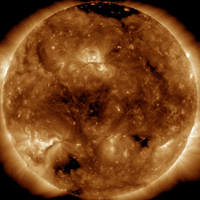There are no significant equatorial coronal holes on the Earthside of the sun. Credit: SDO/AIA