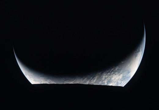 The Moon was mostly but not completely dark during the meteor shower. The soft blue-tinged glow of Earth itself was cast across the lunar terrain. "The Earthshine is unreal," reported Glover. "Humans have not evolved to see what we are seeing. It's hard to describe"