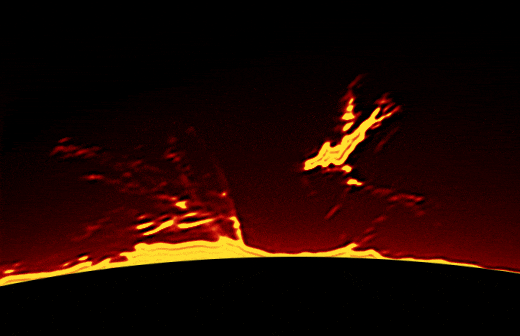 "This was a strange prominence on the western limb," says Wilson. "It had a very bright plasma blob suspended in space with lots of fainter streamers writhing around it. The colors reminded me of tracer fire over a city in WW2."