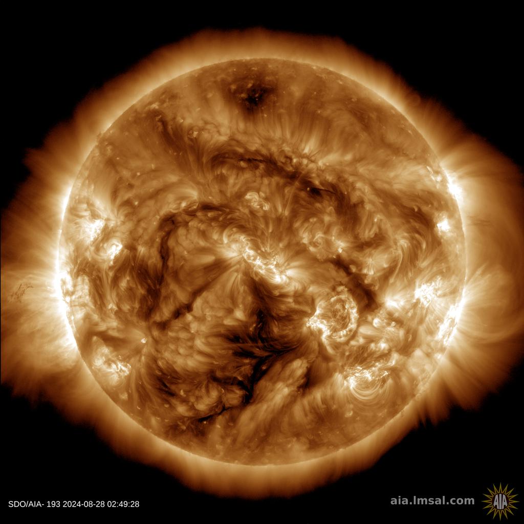 CME IMPACT SPARKS GEOMAGNETIC STORM: Yesterday, Aug. 27th, a CME struck Earth. At first, the CME's impact appeared weak and, indeed, it did not cause an immediate geomagnetic storm. However, during the early hours of Aug. 28th, magnetic fields in the CME's wake linked to Earth's magnetic field, causing storms of category G2. Auroras were photographed in Europe and the USA. CME impact alerts: SMS Text