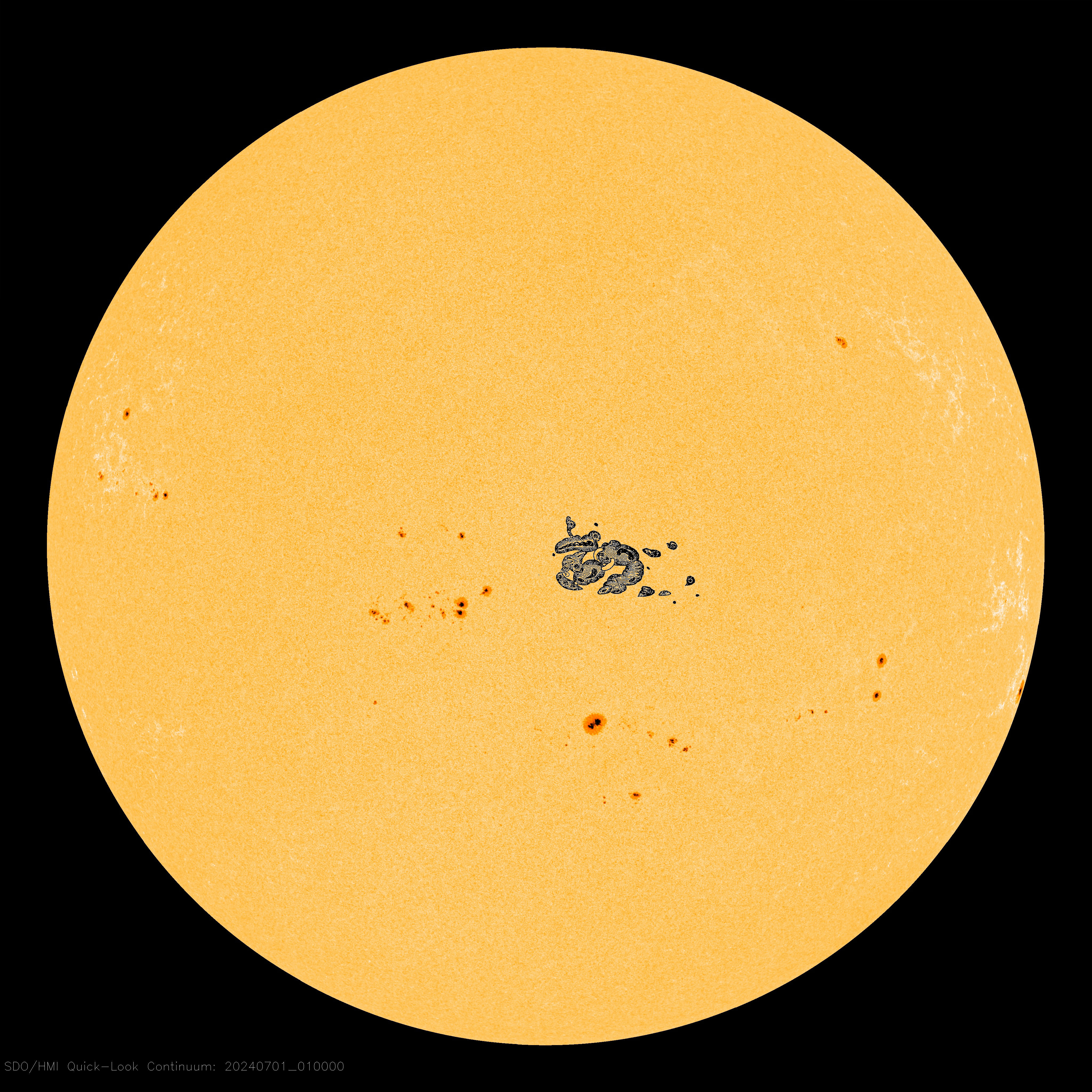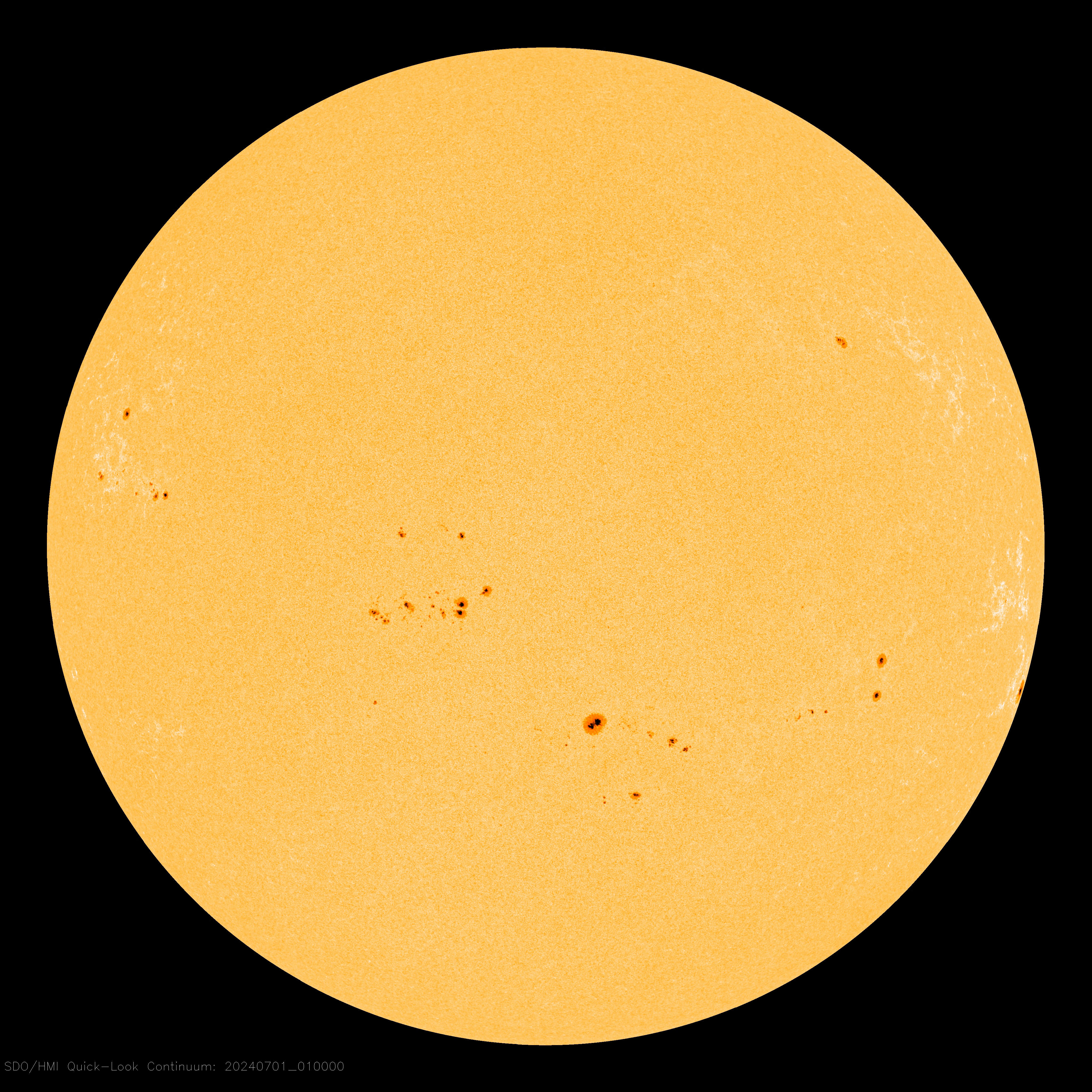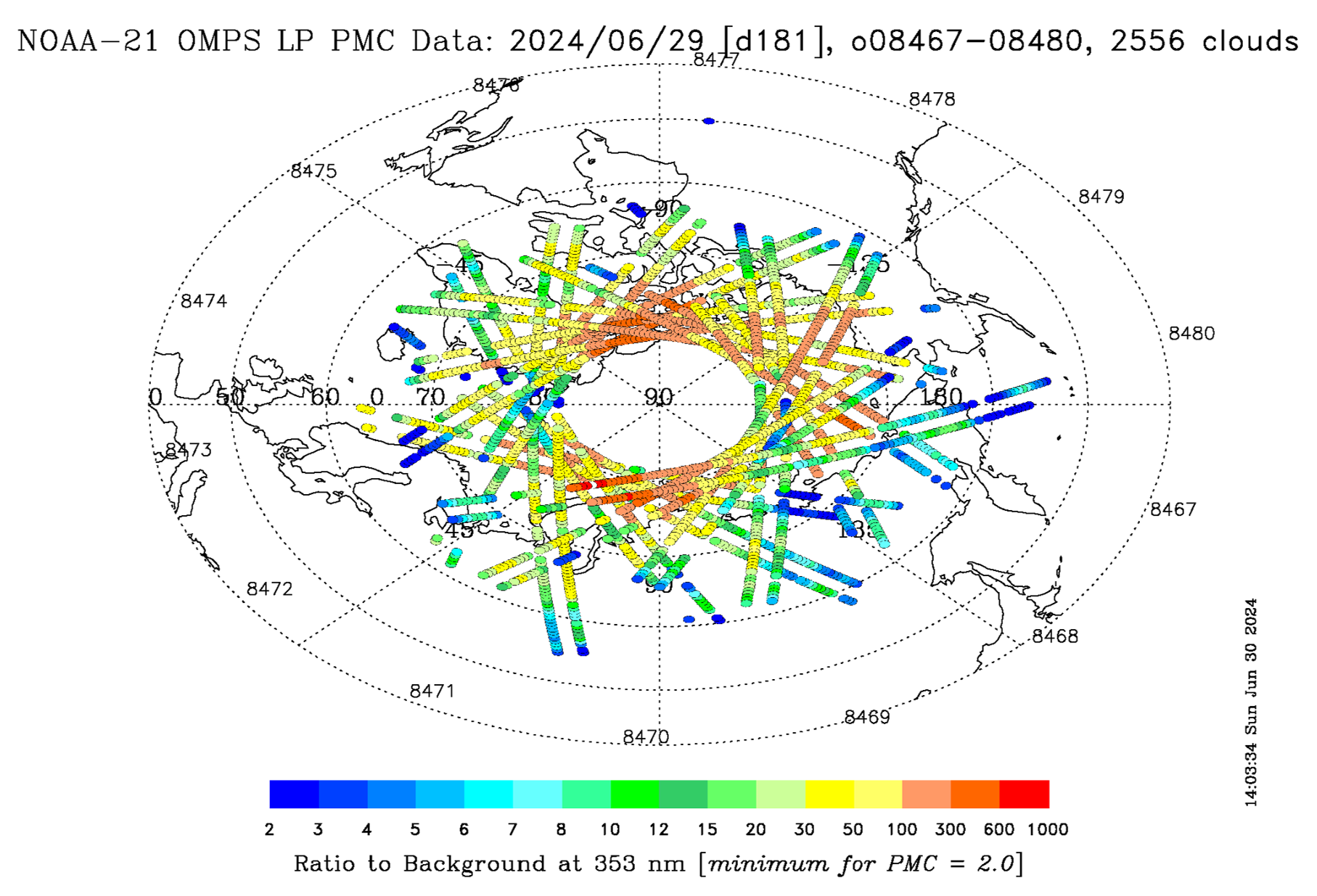 | | | Switch to: Europe, USA, New Zealand, Antarctica Credit: NOAA/Ovation Planetary K-index Now: Kp= 0.67 quiet 24-hr max: Kp= 2.00 quiet explanation | more data Interplanetary Mag. Field Btotal: 3.15 nT Bz: 0.29 nT north more data: ACE, DSCOVR Updated: Today at 1147 UT Coronal Holes: 01 Jul 24  There are no equatorial coronal holes on the Earthside of the sun.Credit: SDO/AIA Polar Stratospheric Clouds Colorful Type II polar stratospheric clouds (PSC) form when the temperature in the stratosphere drops to a staggeringly low -85C. NASA's MERRA-2 climate model predicts when the air up there is cold enough:  On July 01, 2024, the Arctic stratosphere is much too warm for Type II polar stratospheric clouds. | more data. Noctilucent Clouds They're back! The northern season for NLCs is underway. The first clouds were detected inside the Arctic Circle on May 25, 2024, by the NOAA 21 satellite. The clouds have since spread, and now observers are seeing from the ground as well:  Updated: June 29, 2024 An instrument onboard NOAA 21 (OMPS LP) is able to detect NLCs (also known as "polar mesospheric clouds" or PMCs). In the daily map, above, each dot is a detected cloud. As the season progresses, these dots will multiply in number and shift in hue from blue to red as the brightness of the clouds intensifies. SPACE WEATHER NOAA Forecasts | | Updated at: 2024 Jul 01 2200 UTC FLARE | 0-24 hr | 24-48 hr | CLASS M | 35 % | 35 % | CLASS X | 05 % | 05 % | Geomagnetic Storms: Probabilities for significant disturbances in Earth's magnetic field are given for three activity levels: active, minor storm, severe storm Updated at: 2024 Jul 01 2200 UTC Mid-latitudes | 0-24 hr | 24-48 hr | ACTIVE | 30 % | 35 % | MINOR | 15 % | 30 % | SEVERE | 01 % | 10 % | High latitudes | 0-24 hr | 24-48 hr | ACTIVE | 15 % | 10 % | MINOR | 30 % | 20 % | SEVERE | 45 % | 65 % | | | |  | | | | | | | | | | | This is an AI Free Zone! Text created by Large Language Models is spreading rapidly across the Internet. It's well-written, artificial, frequently inaccurate. If you find a mistake on Spaceweather.com, rest assured it was made by a real human being. | | | 3RD OF JULY FIREWORKS: NOAA forecasters say that G1-class geomagnetic storms are possible on July 3rd when this CME is expected to graze Earth's magnetic field. The approaching CME was hurled into space by an erupting magnetic filament in the sun's southern hemisphere. Aurora alerts: SMS Text IT LOOKS LIKE SOLAR MAX: The first six months of 2024 are in the books. Amateur astronomer Eduardo Schaberger Poupeau stacked daily sun images for all 182 days, and it looks like Solar Max:  "Since the beginning of 2024, the sun has increased its activity," says Poupeau. "The presence of so many sunspots is a clear indication that we are close to the maximum activity of Solar Cycle 25." This composite image shows us two things. First, sunspots are concentrated in two bands, one north and one south of the sun's equator. As the solar cycle unfolds, these two bands will converge on the equator, eventually meeting and extinguishing themselves in a collision of opposite-polarity magnetic fields. Solar Maximum will be replaced by Solar Minimum. Second, the southern hemisphere is spottier than the north. This is not unusual; sometimes one hemisphere dominates the other for months at a time. In this case, sunspot counts were skewed by a single massive southern sunspot (AR3664), which circled the sun three times, tripling its contribution to the southern total. Solar Max is far from over. Forecasters expect it to persist for 2 to 3 years, and we are just getting started. Stay tuned! Realtime Space Weather Photo Gallery Free: Spaceweather.com Newsletter THIS PENDANT HAS TOUCHED THE SHADOW OF THE MOON: On April 8, 2024, the students of Earth to Sky Calculus launched a cosmic ray research balloon directly into a total eclipse of the sun. This handmade pendant went along for the ride. Floating more than 118,110 feet above the path of totality in Texas, the necklace spent 3 minutes and 45 seconds wrapped in the shadow of the Moon:  You can have it for $149.95. Created by an artist in Texas where the balloon was launched, the pendant displays a solar eclipse art print sealed under a smooth glass cover. It comes with a greeting card showing the pendant in flight and telling the story of its journey to the edge of space during the total eclipse. Far Out Gifts: Earth to Sky Store All sales support hands-on STEM education Realtime Comet Photo Gallery Free: Spaceweather.com Newsletter Realtime Aurora Photo Gallery Free: Spaceweather.com Newsletter Realtime Noctilucent Cloud Photo Gallery Free: Spaceweather.com Newsletter Every night, a network of NASA all-sky cameras scans the skies above the United States for meteoritic fireballs. Automated software maintained by NASA's Meteoroid Environment Office calculates their orbits, velocity, penetration depth in Earth's atmosphere and many other characteristics. Daily results are presented here on Spaceweather.com. On Jul 01, 2024, the network reported 10 fireballs. (9 sporadics, 1 Microscorpiid) In this diagram of the inner solar system, all of the fireball orbits intersect at a single point--Earth. The orbits are color-coded by velocity, from slow (red) to fast (blue). [Larger image] [movies] Potentially Hazardous Asteroids ( PHAs) are space rocks larger than approximately 100m that can come closer to Earth than 0.05 AU. None of the known PHAs is on a collision course with our planet, although astronomers are finding new ones all the time. On July 1, 2024 there were 2349 potentially hazardous asteroids.  | Recent & Upcoming Earth-asteroid encounters: | Asteroid | Date(UT) | Miss Distance | Velocity (km/s) | Diameter (m) | | 2019 NJ | 2024-Jun-27 | 17.2 LD | 10.1 | 66 | | 415029 | 2024-Jun-27 | 17.3 LD | 25.9 | 2304 | | 2022 MM1 | 2024-Jun-28 | 7.8 LD | 10.9 | 39 | | 2010 XN | 2024-Jun-28 | 14.1 LD | 11.3 | 52 | | 2024 MW | 2024-Jun-28 | 0.2 LD | 13.6 | 5 | | 2024 MS1