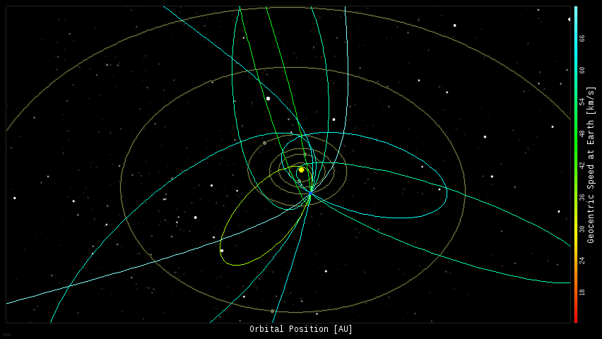 | Asteroid | Date(UT) | Miss Distance | Velocity (km/s) | Diameter (m) |