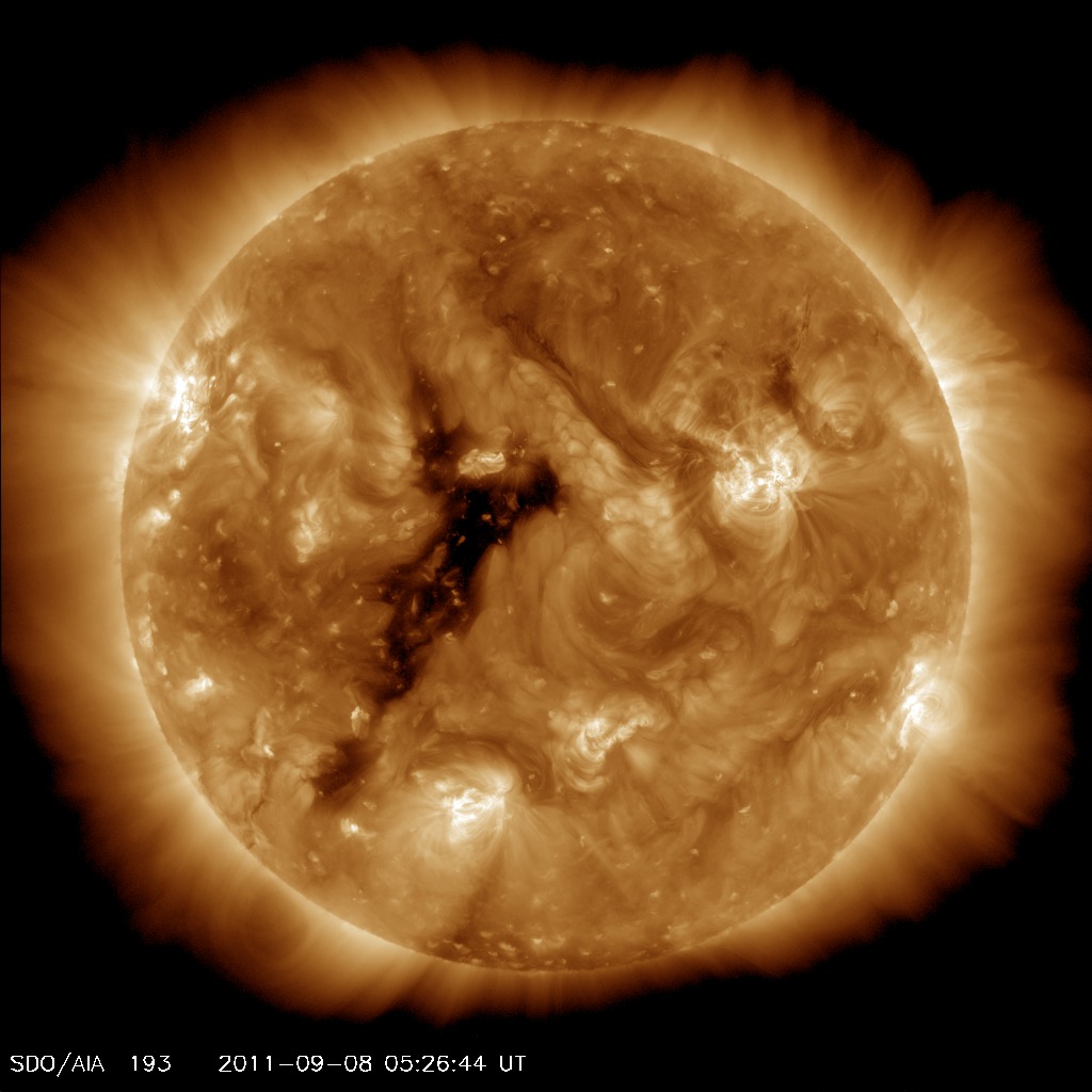 Since Sept. 6th, sunspot 1283 has propelled at least three CMEs in the general direction of Earth. Glancing blows from the incoming clouds will commence sometime on Sept. 9th and continue through Sept. 11th, possibly sparking minor geomagnetic storms. Solar flare alerts: text, voice.