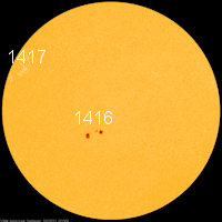 SUNSPOT OF INTEREST: For the second day in a row, sunspot AR1416 has doubled in size: movie. Moreover, it has developed a "beta-gamma" magnetic field that harbors energy for M-class solar flares. Any such eruptions this weekend would be Earth directed as the sunspot turns to face our planet. Solar flare alerts: text, voice.