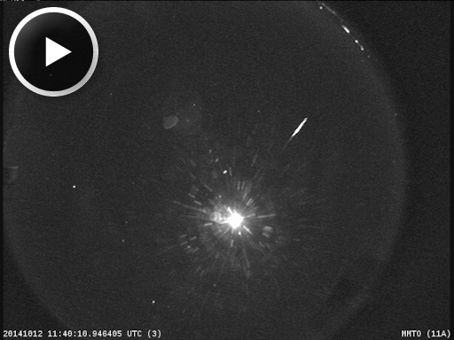 This fireball is a sign that the Orionid meteor shower is about to begin. Every year in mid- to late-October, Earth passes through a stream of debris from Halley's Comet, the parent of the Orionids. For many nights in a row, pre-dawn sky watchers can see meteors streaking out of the constellation Orion, near the Hunter's shoulder. In 2014, forecasters expect the Orionids to peak on Oct. 21-22 with 20 to 25 meteors per hour.