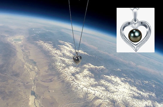 You can have it for $279.95. Measuring 9 mm in diameter, and mounted inside a sterling silver heart, this premium Tahitian pearl floated through the stratosphere for 3 hours while sensors onboard the balloon's payload measured the storm's radiation.
