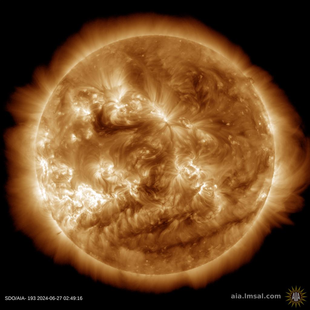 GEOMAGNETIC STORM WATCH (G1): Minor G1-class geomagnetic storms are possible on June 28th when a CME is expected to graze Earth's magnetic field. It was launched into space during the early hours of June 25th by an erupting filament of magnetism in the sun's southern hemisphere. Solar flare alerts: SMS Text