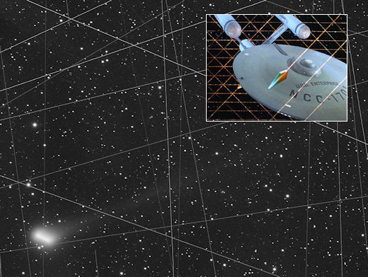 The checkerboard streaks in this image were photographed by Lorenzo Comolli of Saint Barthelemy, Italy. He was trying to take a picture of Comet Lemmon in September, but as the exposure time increased, more and more Starlink satellites crossed the field of view.