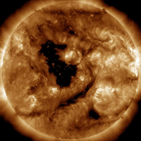 Solar wind flowing from this equatorial coronal hole should reach Earth on Oct. 11-12. Credit: NASA/SDO | more data