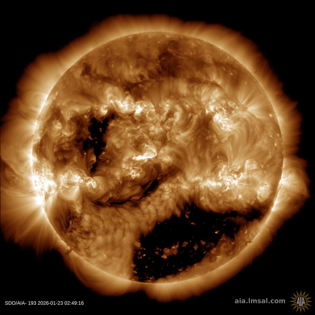 Earth is inside a stream of solar wind flowing from this coronal hole.